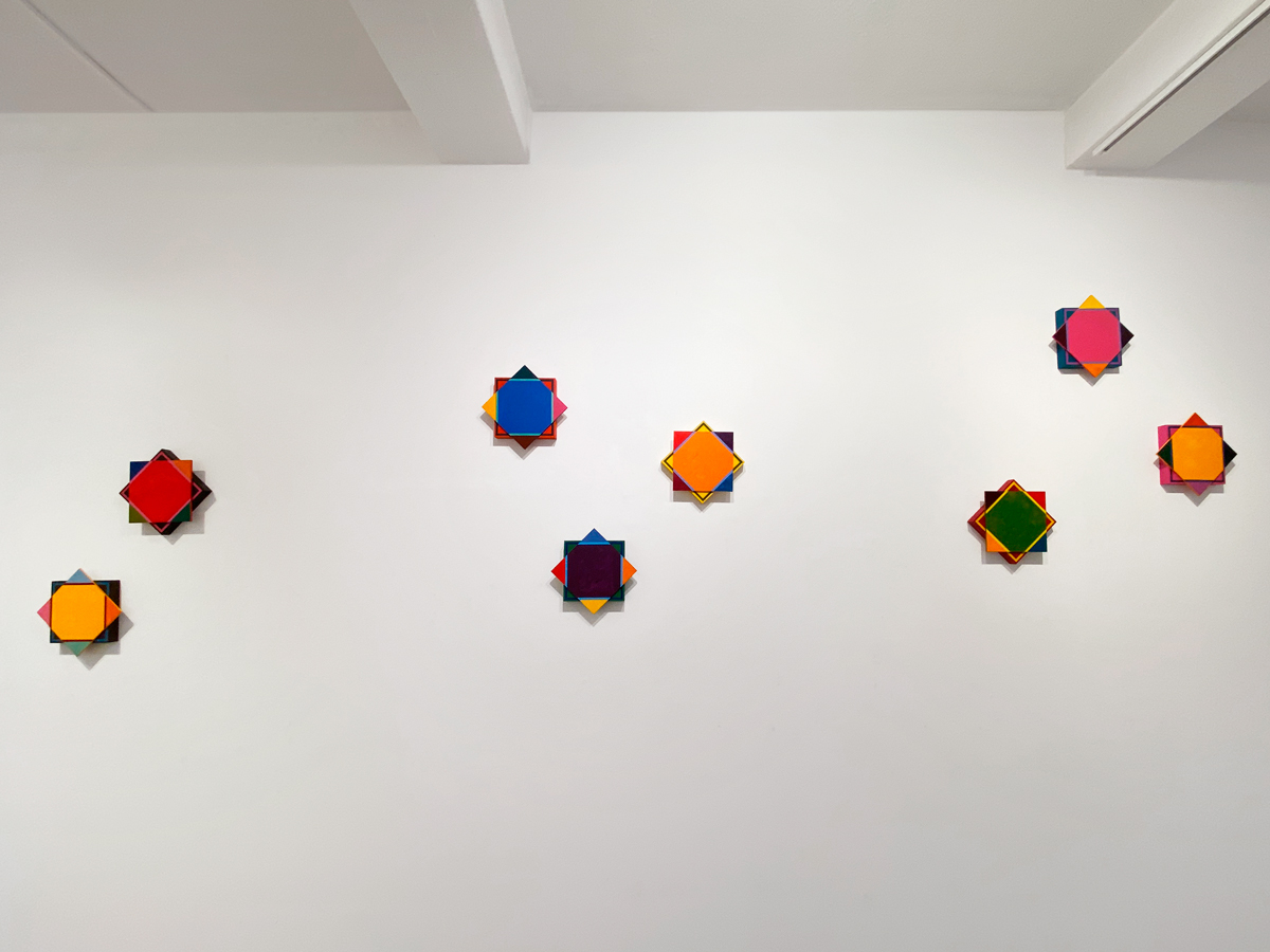 Above image from left: Trap R, Trap N, Trap J, Trap O, Trap T, Trap L, Trap Q and Trap M by Masami Yoshioka (2025, Acrylic on Wood, H24cm×W22cm)